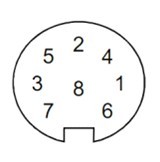 風(fēng)速風(fēng)向儀底部有一個8 腳防水插頭,用以通過屏蔽電纜線連接外部電源和通信接口。